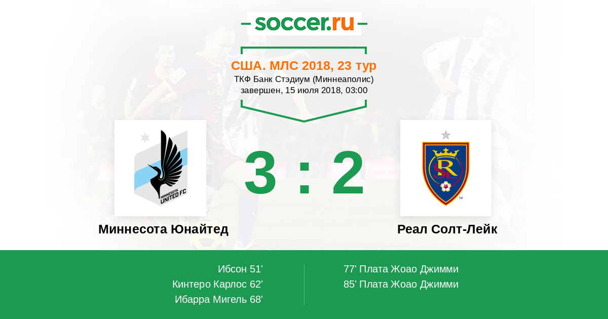 Протокол матча Миннесота Юнайтед против Реал Солт-Лейк