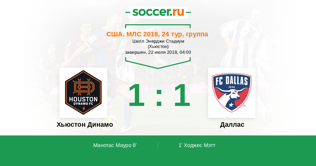 Протокол матча Хьюстон Динамо против Даллас