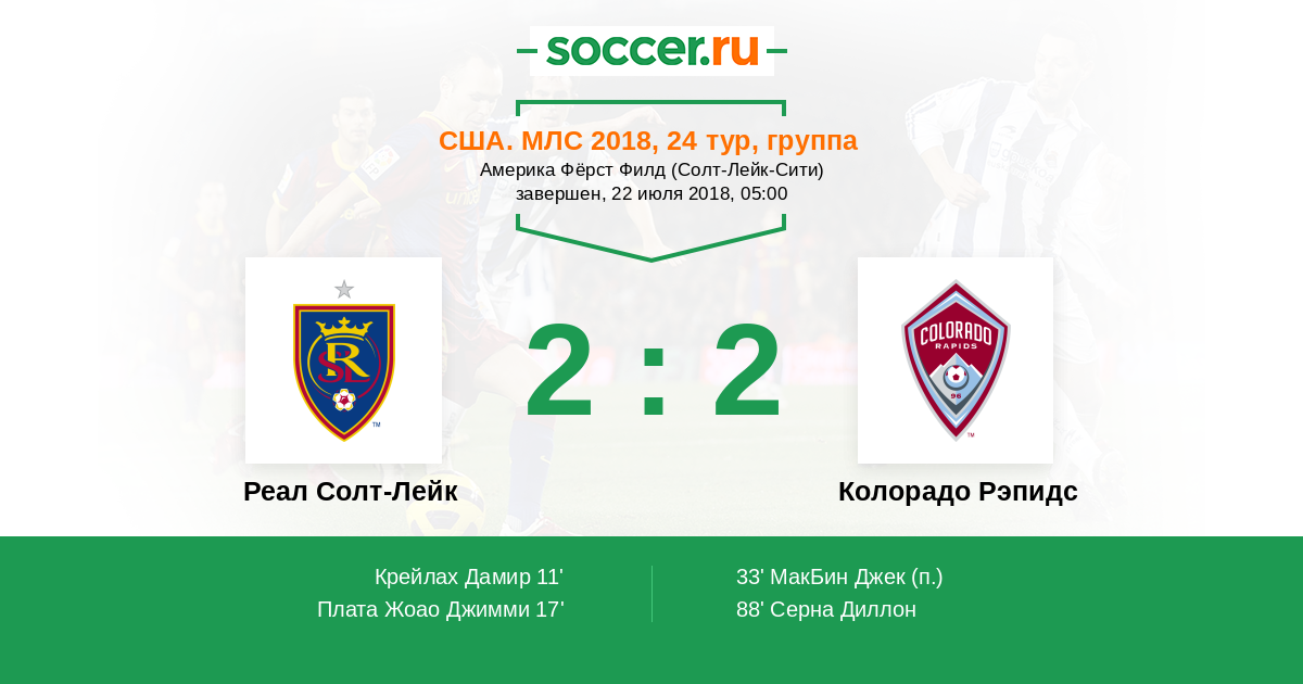 Протокол матча Реал Солт-Лейк против Колорадо Рэпидс