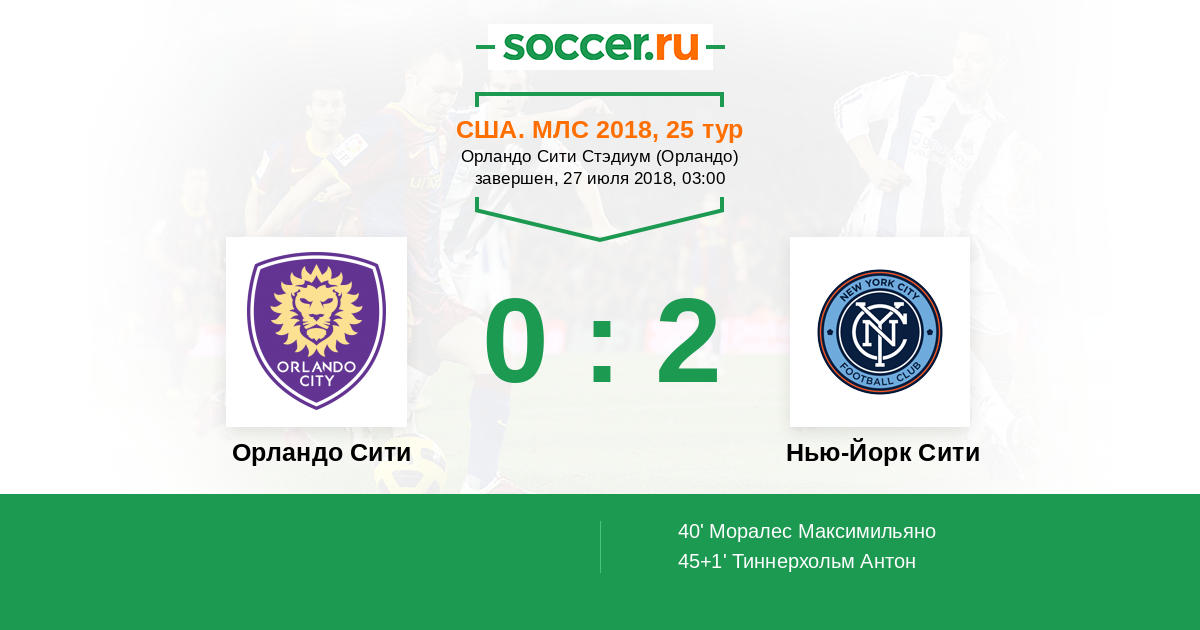 Протокол матча Орландо Сити против Нью-Йорк Сити