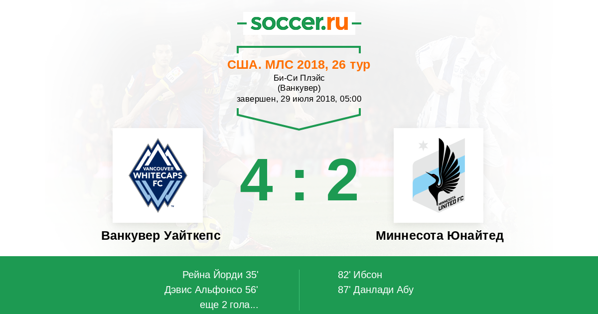 Протокол матча Ванкувер Уайткепс против Миннесота Юнайтед