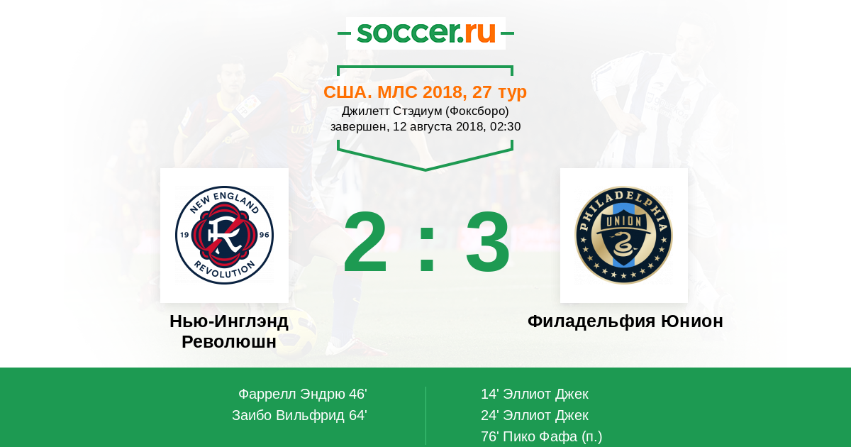 Протокол матча Нью-Инглэнд Революшн против Филадельфия Юнион