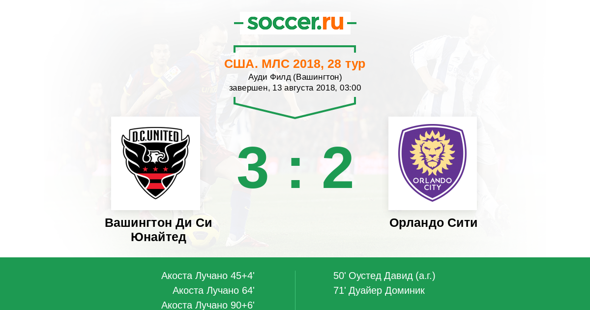 Протокол матча Вашингтон Ди Си Юнайтед против Орландо Сити