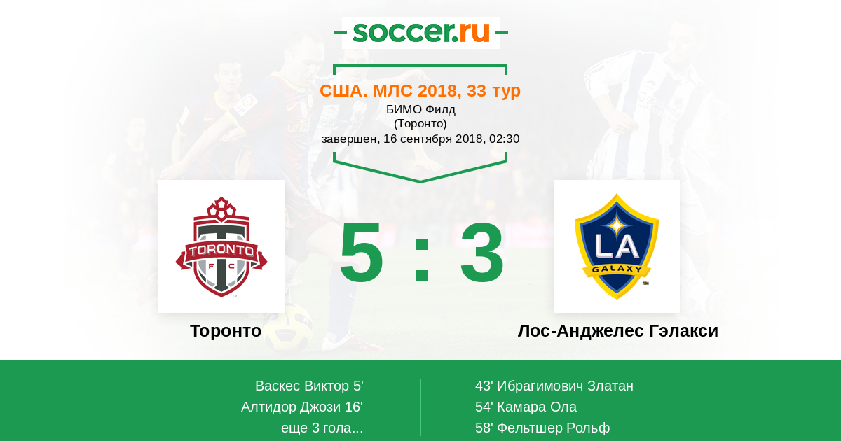 Протокол матча Торонто против Лос-Анджелес Гэлакси