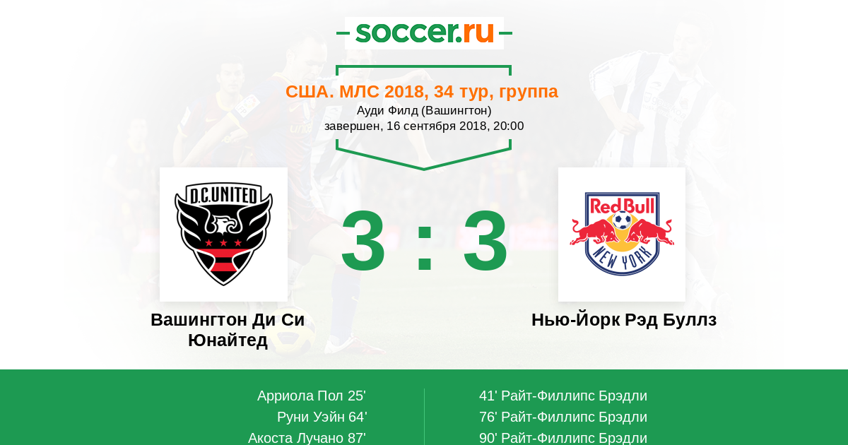 Протокол матча Вашингтон Ди Си Юнайтед против Нью-Йорк Рэд Буллз