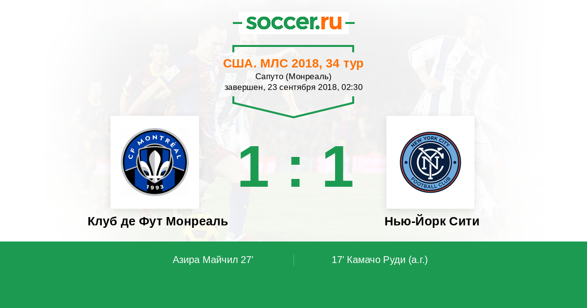 Протокол матча Клуб де Фут Монреаль против Нью-Йорк Сити
