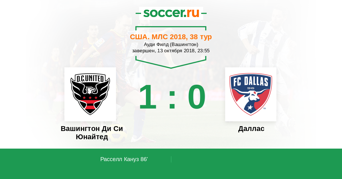 Протокол матча Вашингтон Ди Си Юнайтед против Даллас