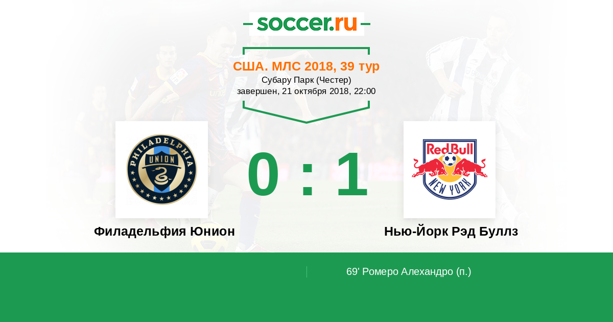 Протокол матча Филадельфия Юнион против Нью-Йорк Рэд Буллз