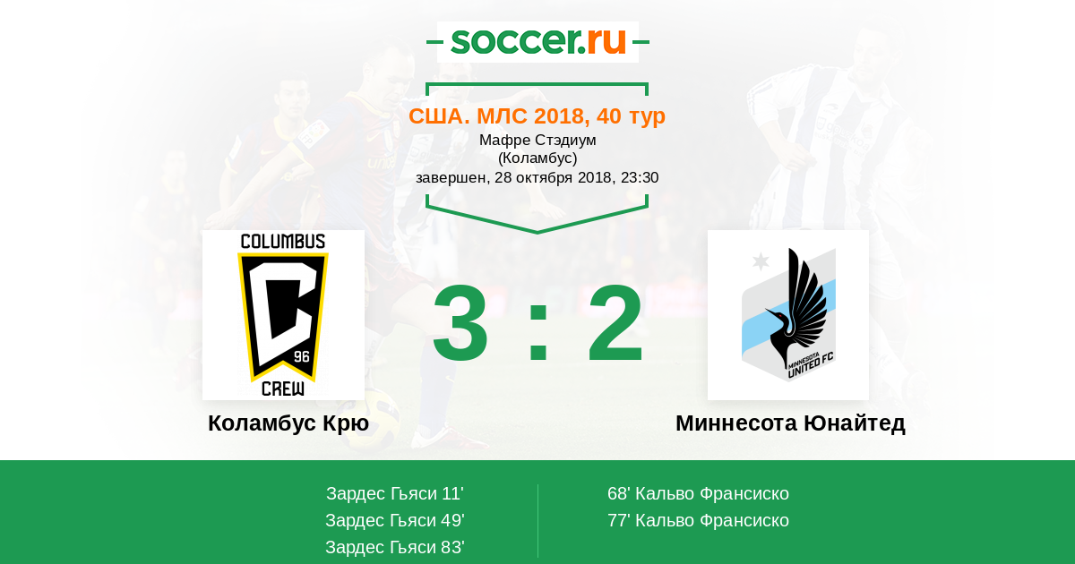 Протокол матча Коламбус Крю против Миннесота Юнайтед