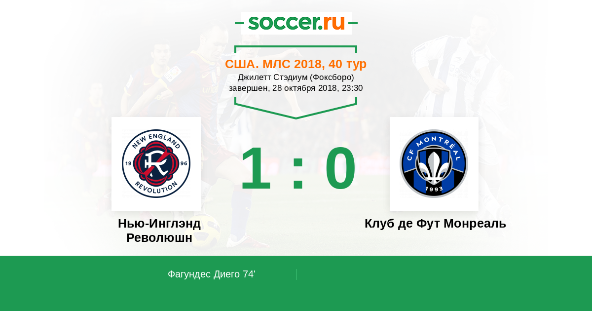 Протокол матча Нью-Инглэнд Революшн против Клуб де Фут Монреаль