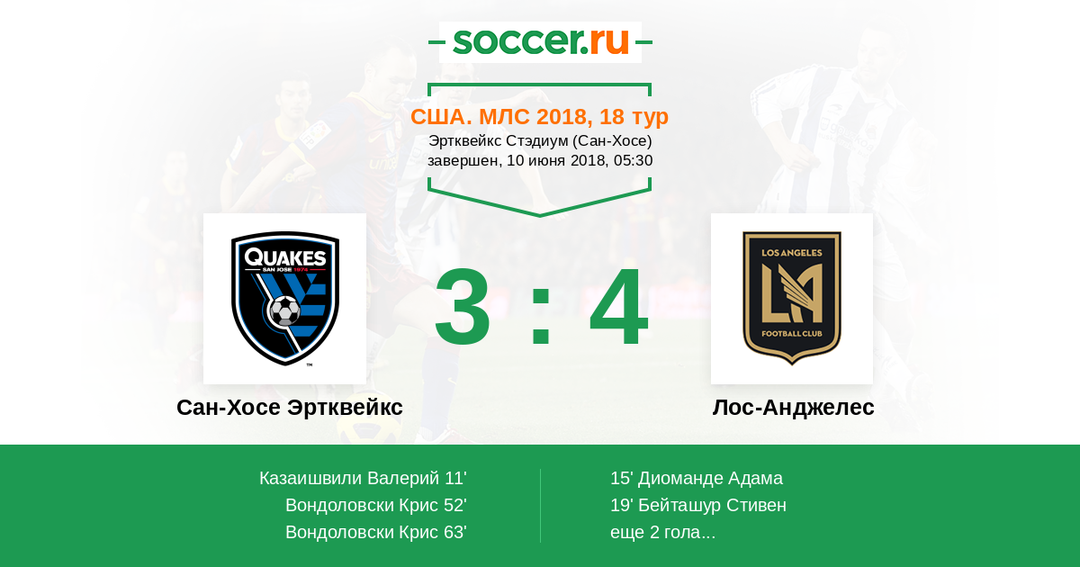 Протокол матча Сан-Хосе Эртквейкс против Лос-Анджелес