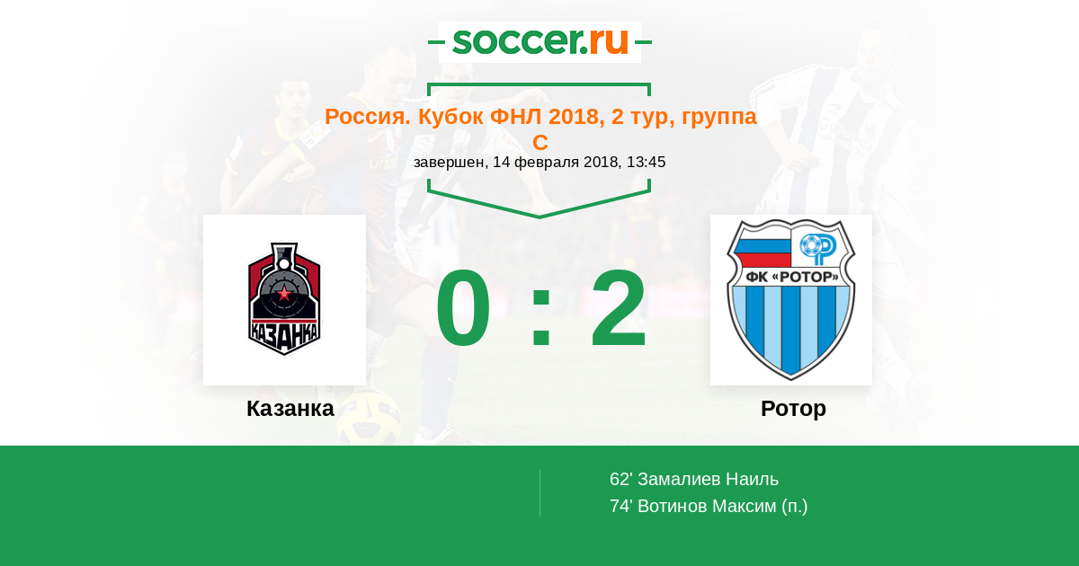 Протокол матча Казанка против Ротор