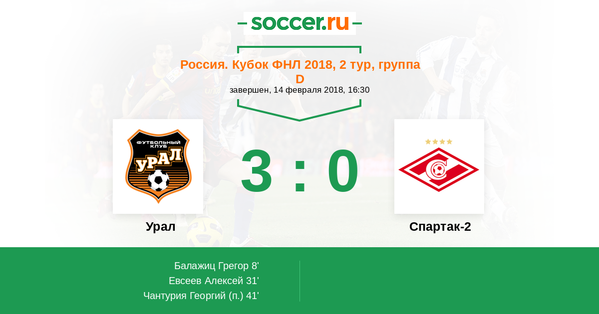 Протокол матча Урал против Спартак-2