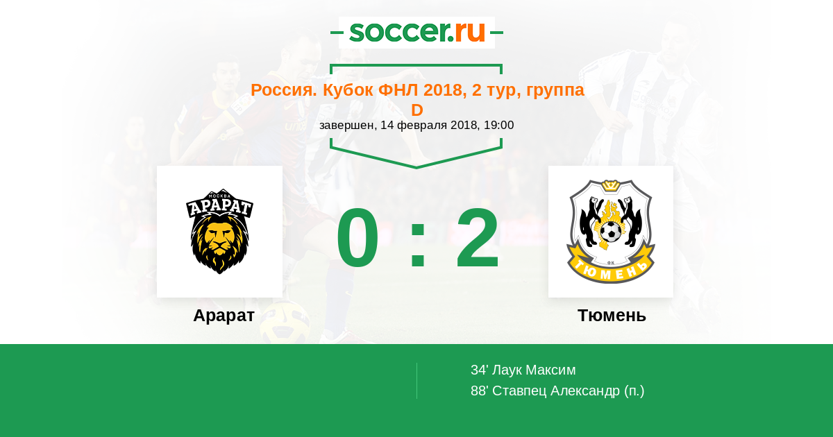 Протокол матча Арарат против Тюмень