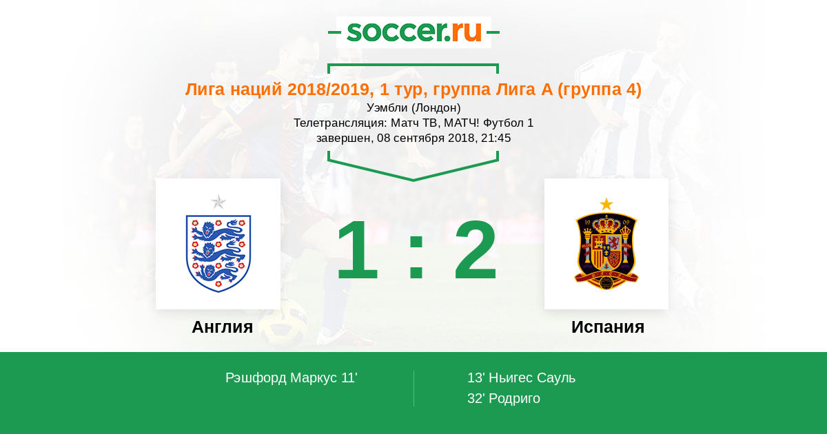Протокол матча Англия против Испания