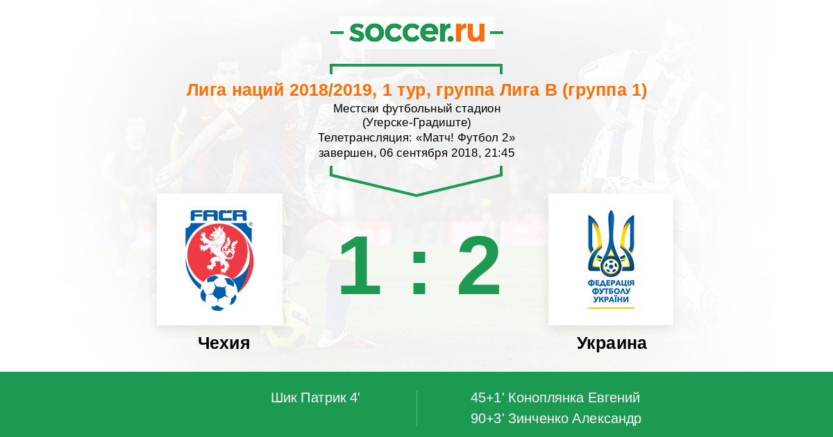 4' (1:0) Шик Патрик (19) (Сикора Ян (6))