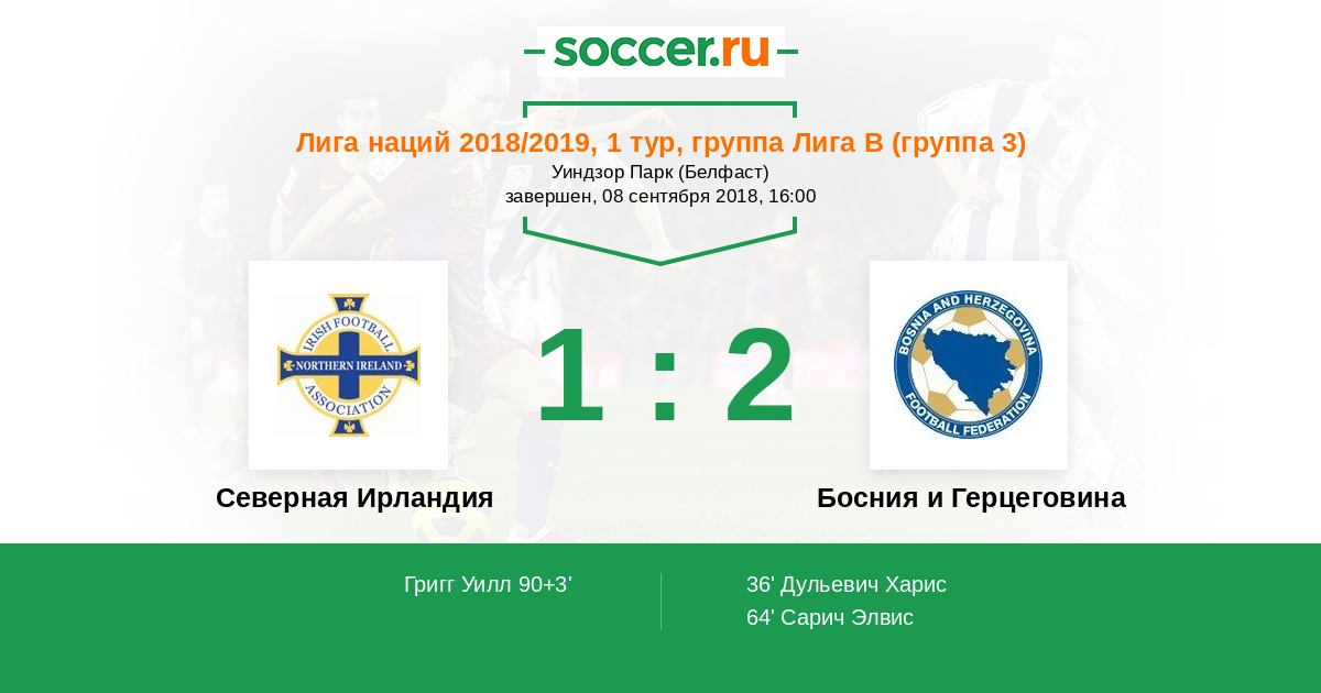 Протокол матча Северная Ирландия против Босния и Герцеговина