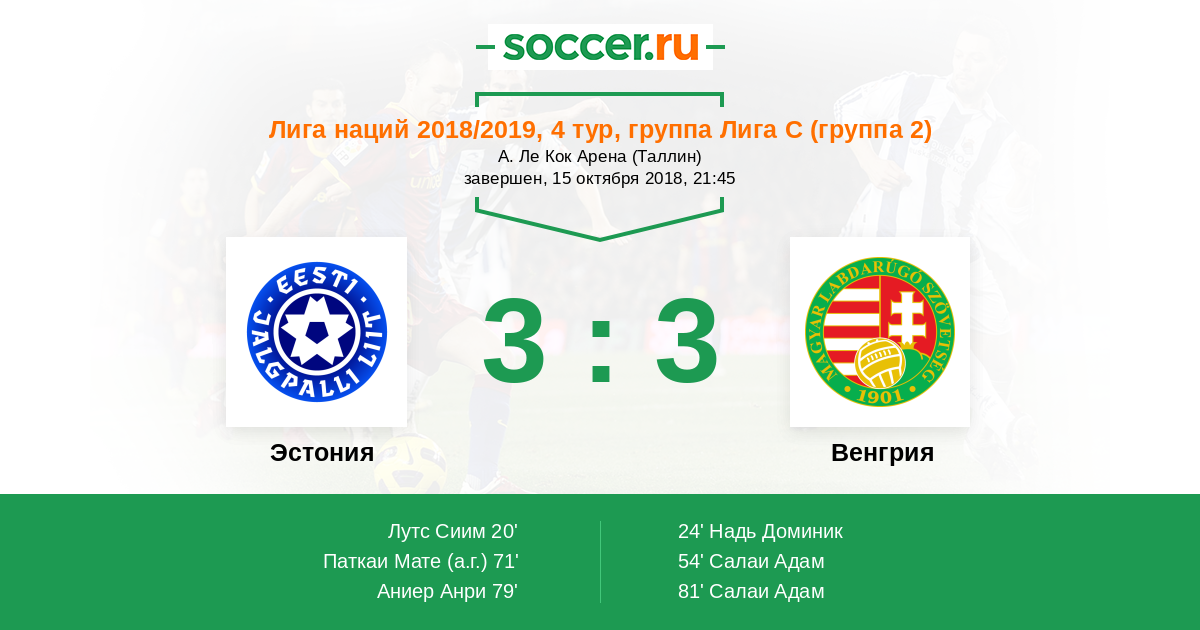 Протокол матча Эстония против Венгрия