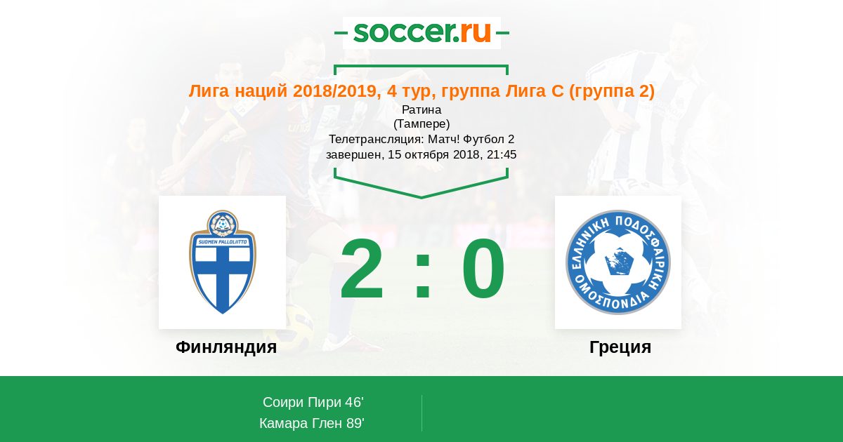 Протокол матча Финляндия против Греция