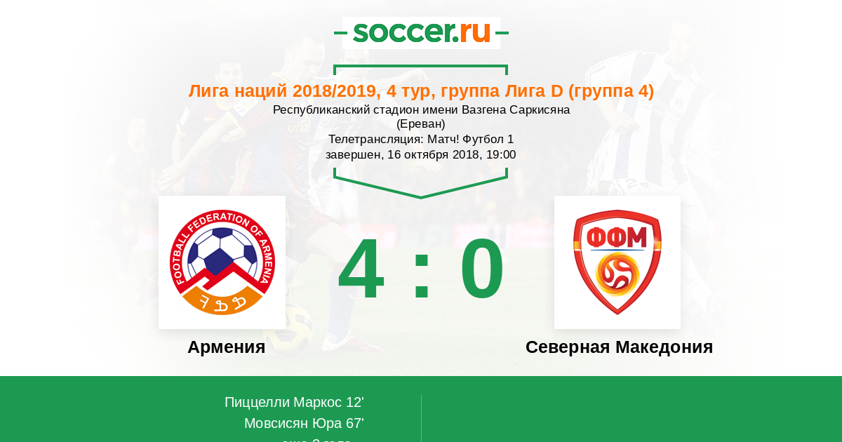 Протокол матча Армения против Северная Македония