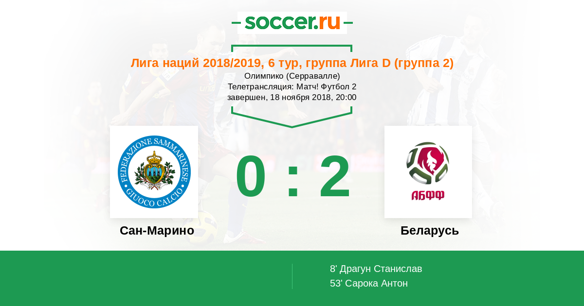 Протокол матча Сан-Марино против Беларусь
