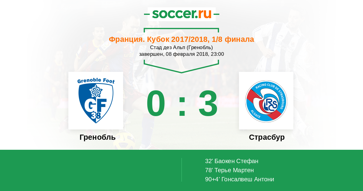 Протокол матча Гренобль против Страсбур
