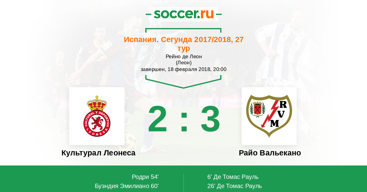 Протокол матча Культурал Леонеса против Райо Вальекано