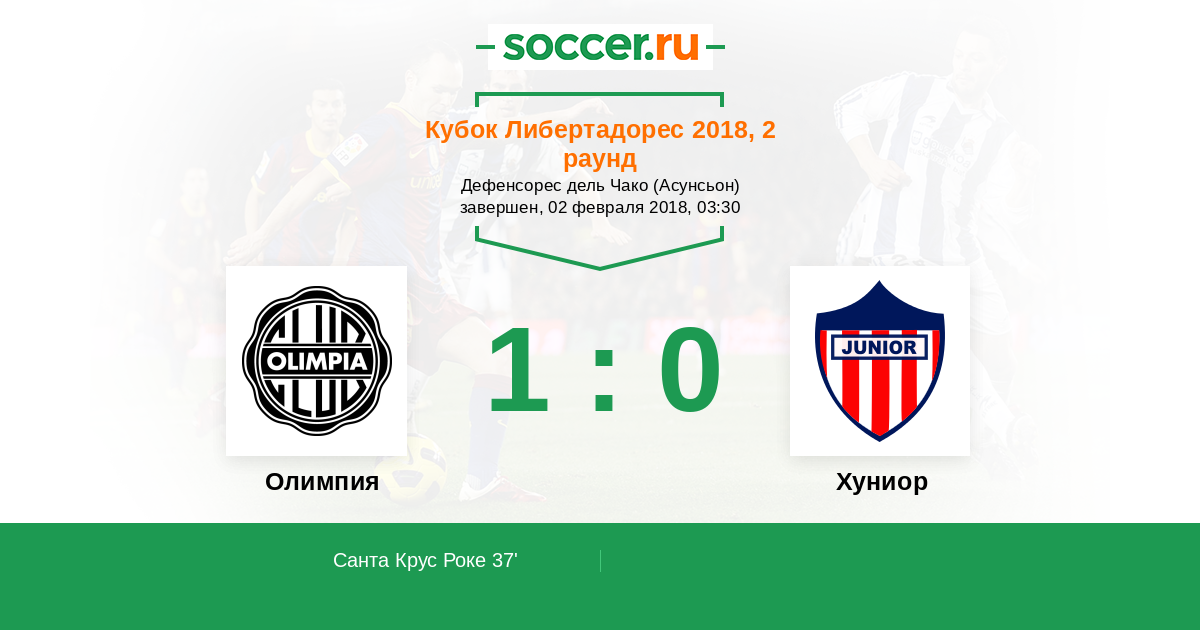 Протокол матча Олимпия против Хуниор