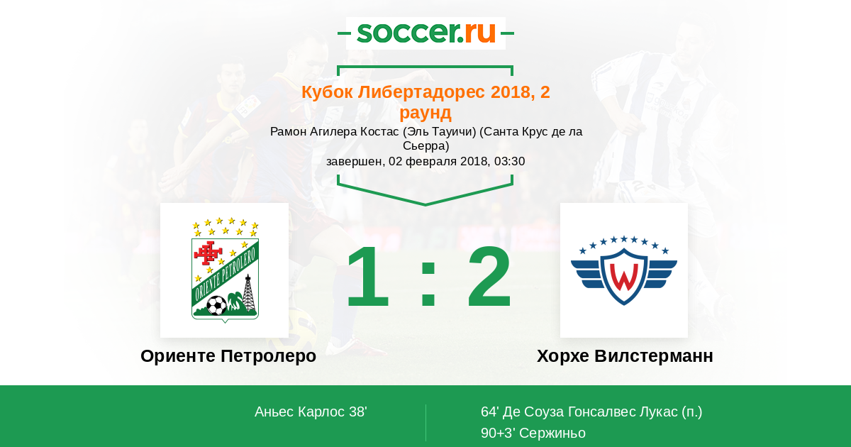 Протокол матча Ориенте Петролеро против Хорхе Вилстерманн