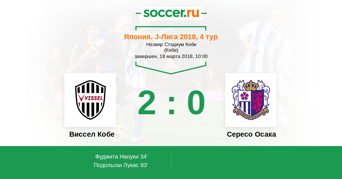 Протокол матча Виссел Кобе против Сересо Осака