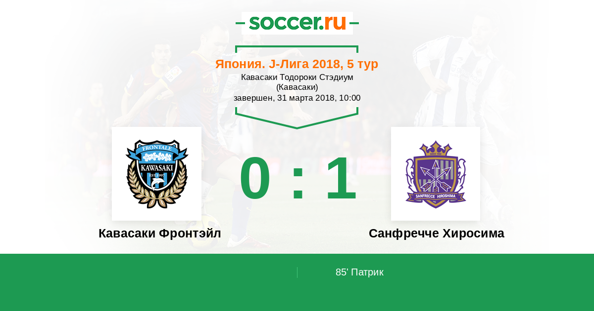 Протокол матча Кавасаки Фронтэйл против Санфречче Хиросима