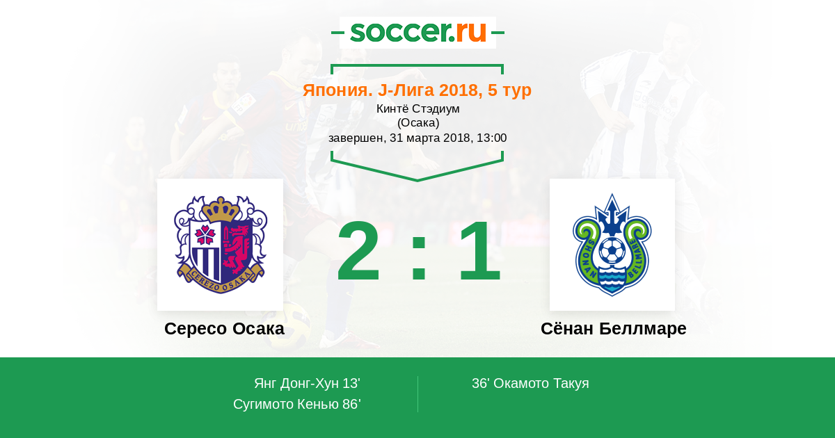 Протокол матча Сересо Осака против Сёнан Беллмаре