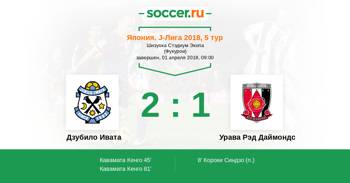 Протокол матча Дзубило Ивата против Урава Рэд Даймондс