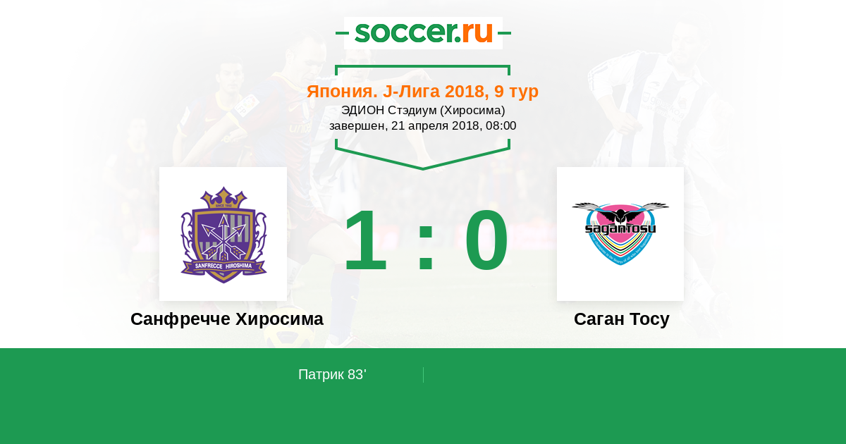 Протокол матча Санфречче Хиросима против Саган Тосу