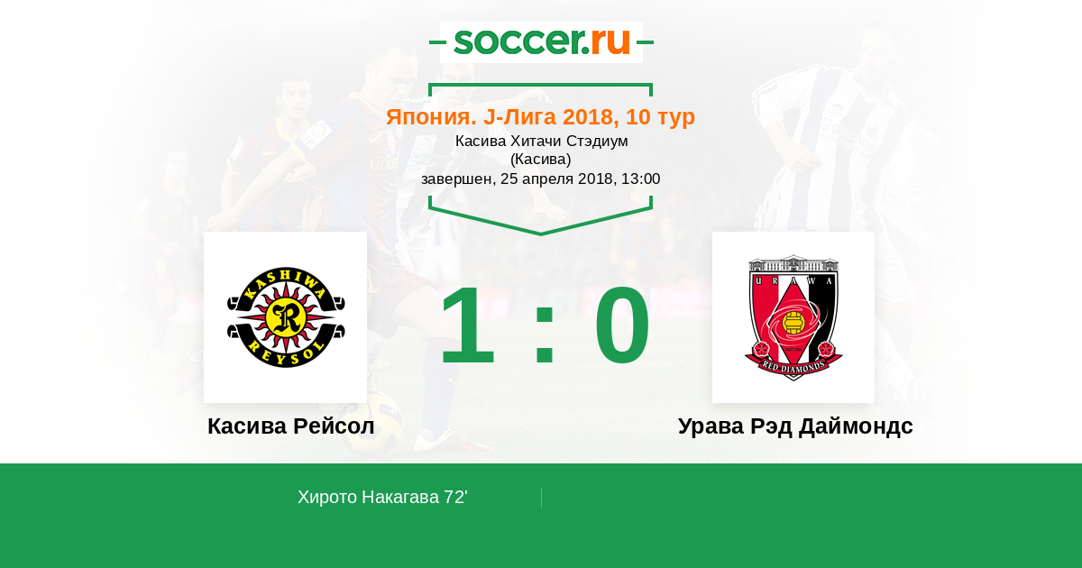 Протокол матча Касива Рейсол против Урава Рэд Даймондс