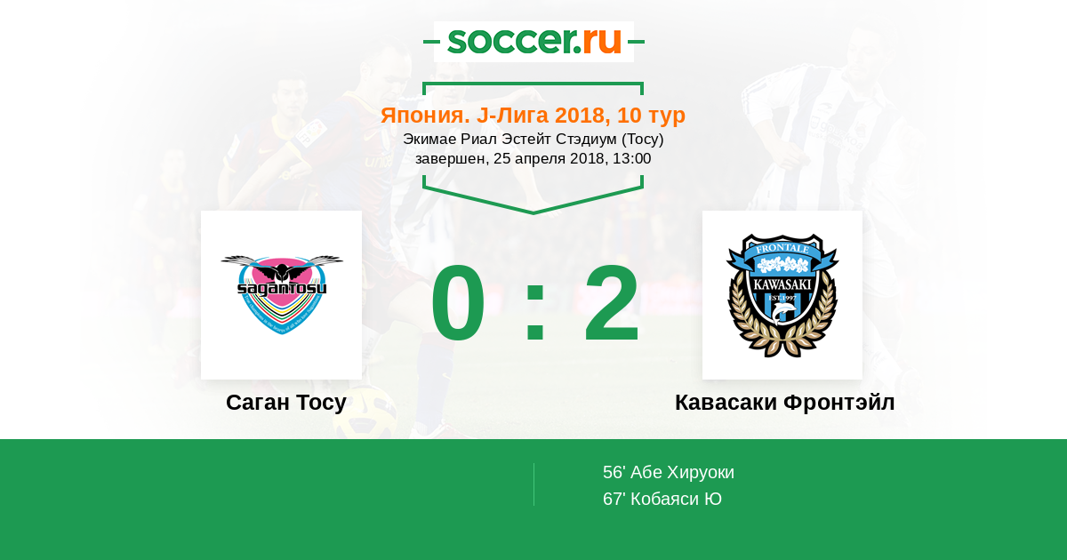 Протокол матча Саган Тосу против Кавасаки Фронтэйл
