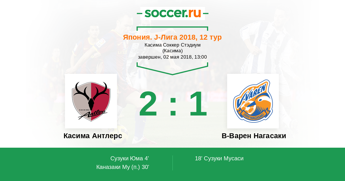 Протокол матча Касима Антлерс против В-Варен Нагасаки