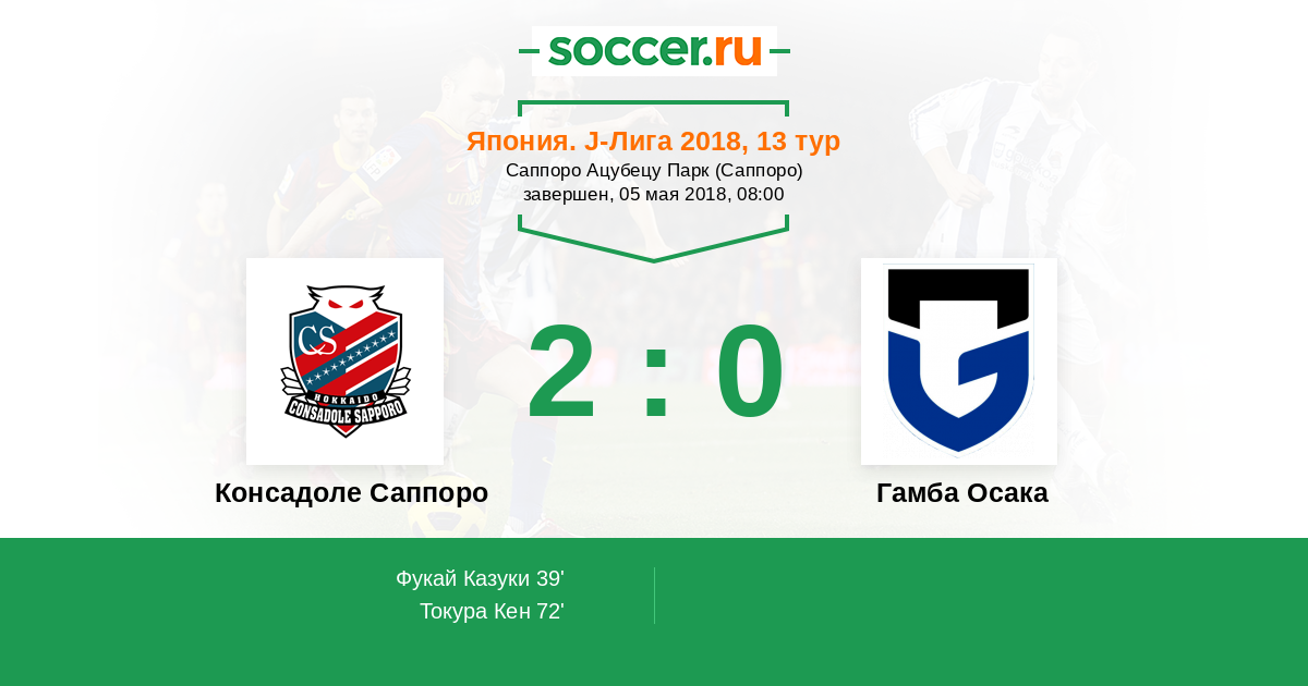 Протокол матча Консадоле Саппоро против Гамба Осака