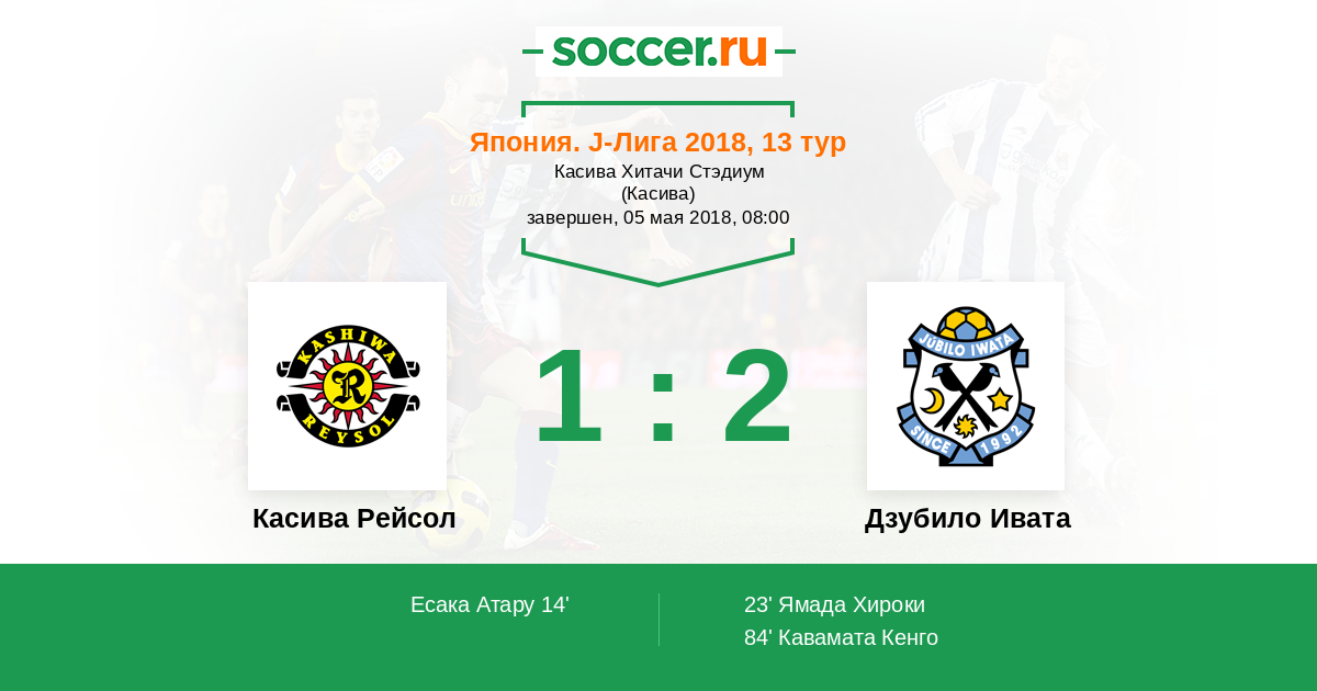Протокол матча Касива Рейсол против Дзубило Ивата