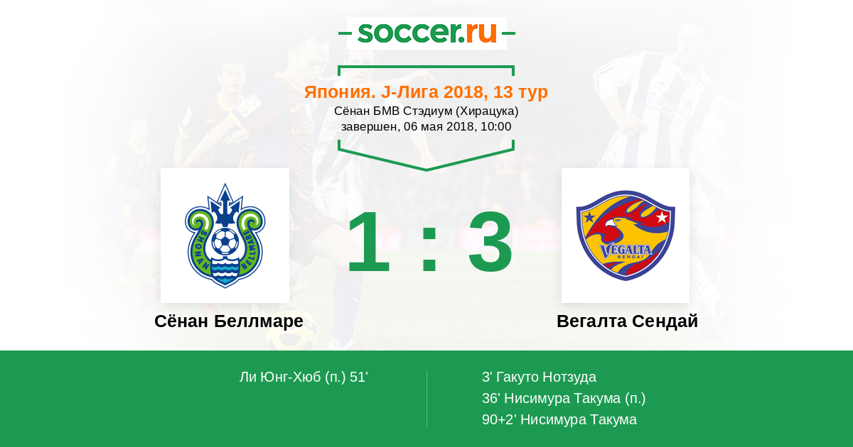 Протокол матча Сёнан Беллмаре против Вегалта Сендай