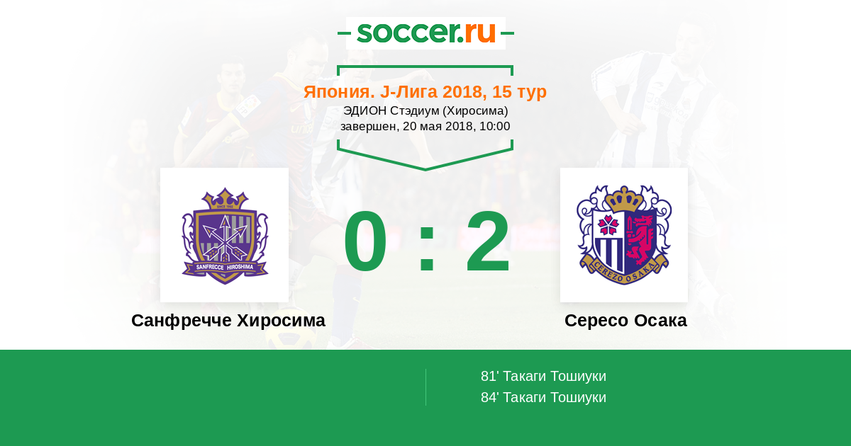 Протокол матча Санфречче Хиросима против Сересо Осака