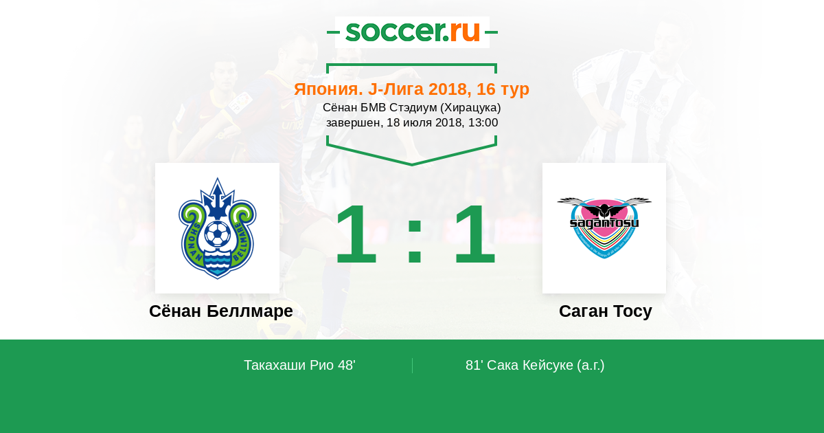 81' (1:1) Автогол Сака Кейсуке (20)