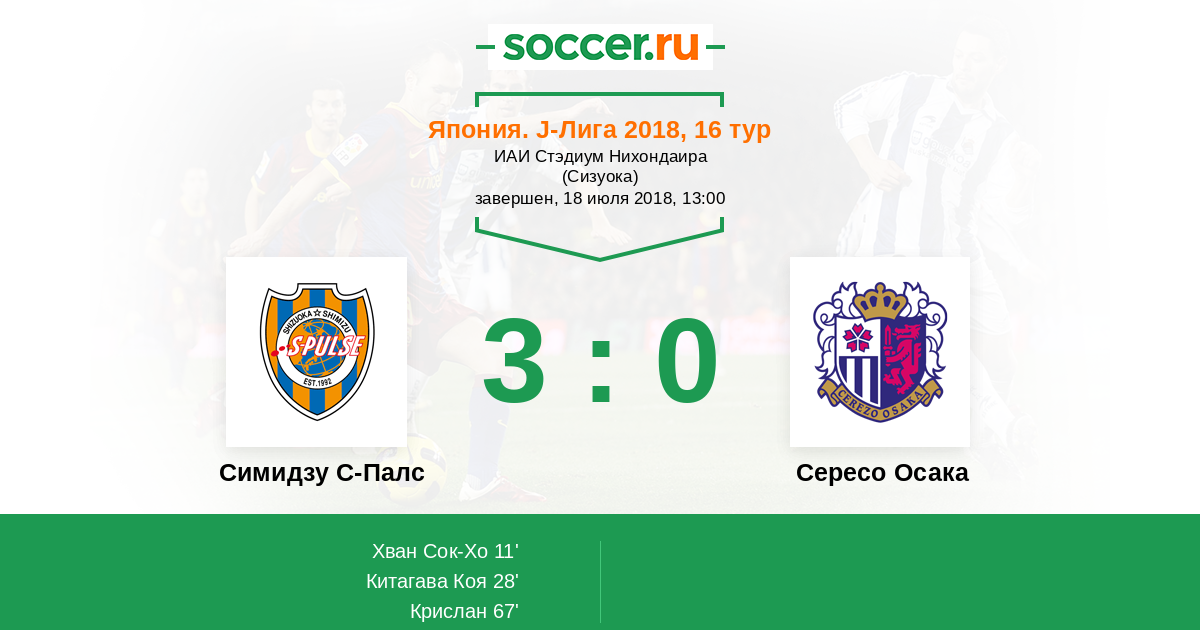 Протокол матча Симидзу С-Палс против Сересо Осака