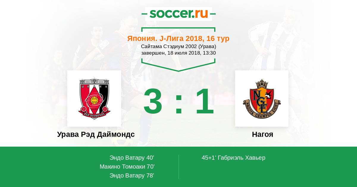 Протокол матча Урава Рэд Даймондс против Нагоя