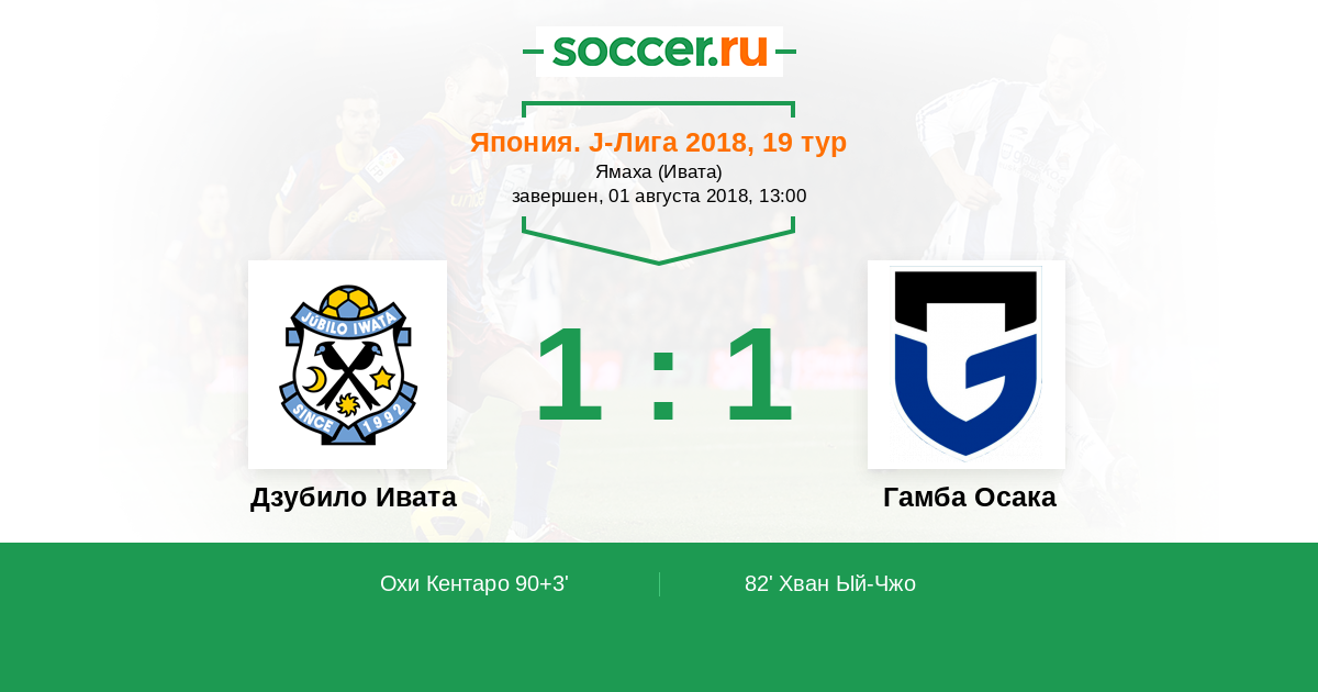 Протокол матча Дзубило Ивата против Гамба Осака