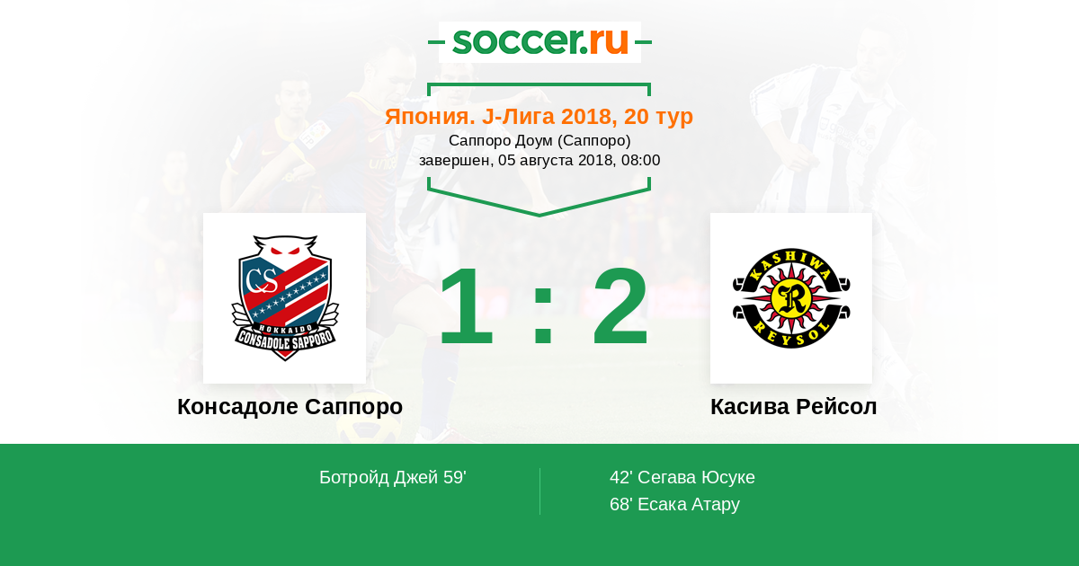 Протокол матча Консадоле Саппоро против Касива Рейсол