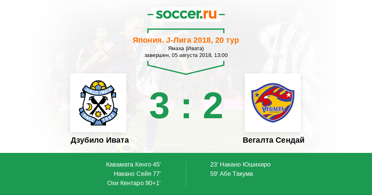 Протокол матча Дзубило Ивата против Вегалта Сендай