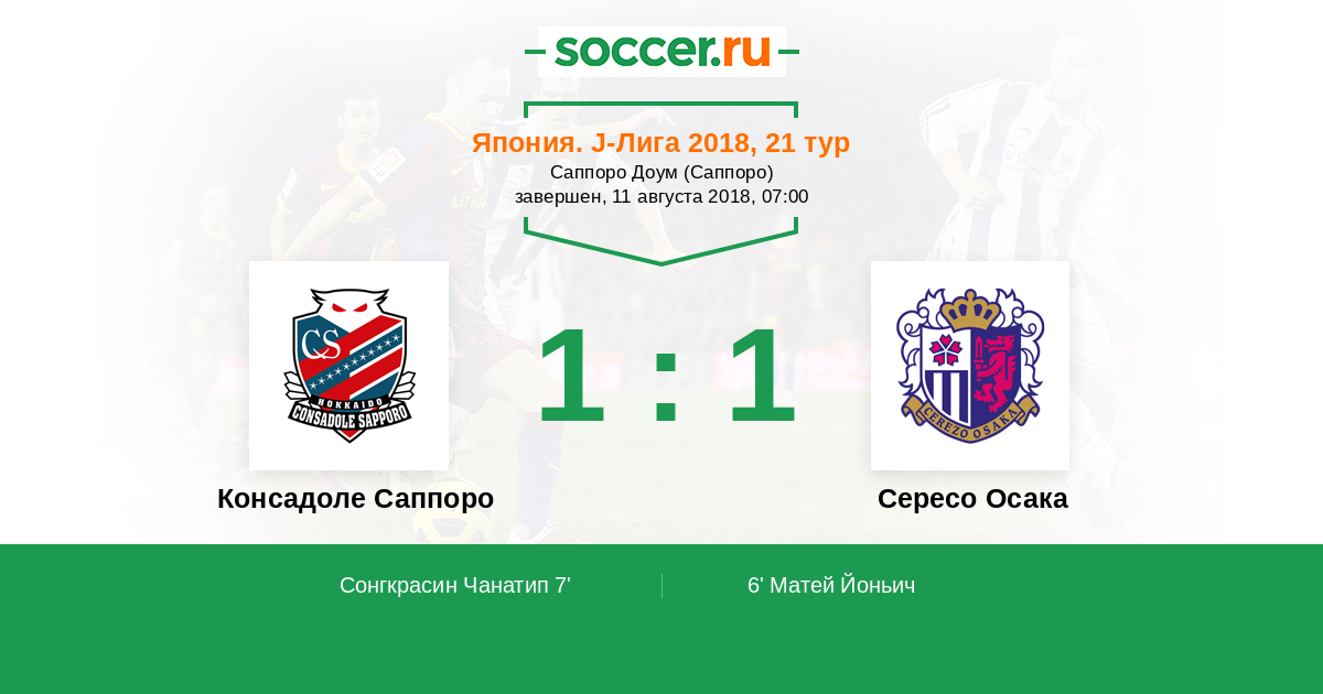 Протокол матча Консадоле Саппоро против Сересо Осака