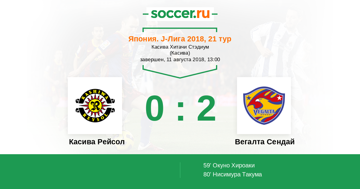 Протокол матча Касива Рейсол против Вегалта Сендай