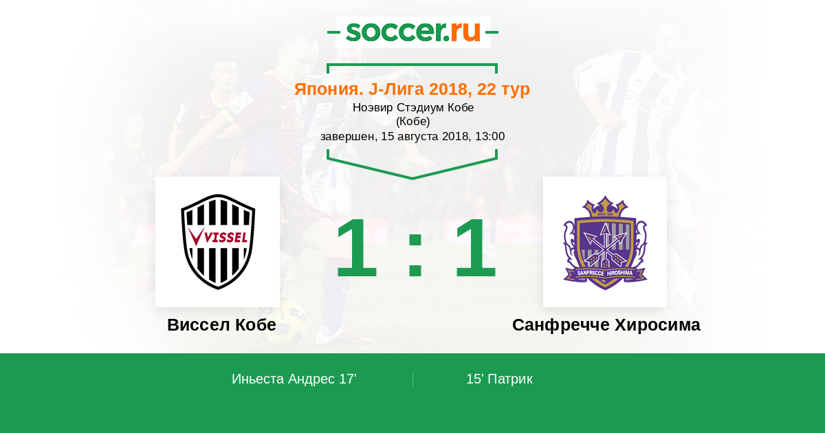 Протокол матча Виссел Кобе против Санфречче Хиросима